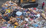 Petugas mengoperasikan alat berat untuk mengubur rokok ilegal hasil penindakan saat pemusnahan barang milik negara di TPA Tanjungrejo, Jekulo, Kudus, Jawa Tengah, Rabu (21/2/2024). Bea Cukai Kudus memusnahkan lebih dari 6 juta batang rokok ilegal berbagai merek senilai Rp7,69 milyar yang terdiri dari 6.419.934 batang Sigaret Kretek Mesin (SKM) dan 2.384 batang Sigaret Kretek Tangan (SKT) serta peralatan penunjang pembuatan rokok ilegal yang terdiri 48 kilogram etiket dan satu unit printer serta empat unit alat pemanas hasil penindakan cukai periode Juni 2022- September 2023. (FOTO : ANTARA FOTO/Yusuf Nugroho)