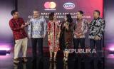 President Director PT Mastercard Indonesia Aileen Goh (ketiga kanan) bersama CEO PT ALTO Network Gretel Griselda (ketiga kiri), CEO Central Capital Ventura Armand Widjaja, President, Asia Pacific Mastercard Ari Sarker, Chief Operations and Technology Officer PT ALTO Network Wahyudi Gunawan, dan Division President Southeast Asia Mastercard Safdar Khan (dari kiri ke kanan) saat acara perluasan kemitraan antara Mastercard dan PT Alto Network di Jakarta, Rabu (21/2/2024). Mastercard memperluas kemitraan dengan PT Alto Network (ALTO) yang dapat mengaplikasikan fitur keamanan tambahan terhadap transaksi kartu debit Mastercard di Indonesia melalui jaringan ALTO. Kemitraan ini memanfaatkan infrastruktur domestik ALTO dan teknologi keamanan siber dan pembayaran kelas dunia Mastercard yang akan memberikan manfaat bagi seluruh ekosistem konsumen, bisnis dan ekonomi secara luas. (FOTO : Republika/Putra M. Akbar)