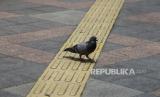 Seekor burung berjalan di trotoar di kawasan Sudirman, Jakarta, Kamis (22/2/2024). Hari tanpa bayangan atau kulminasi utama akan terjadi dua kali dalam setahun 2024, yang disebabkan posisi Indonesia berada di sekitar ekuator. Periode pertama fenomena tersebut akan terjadi di Indonesia pada 21 Februari 2024 di Baa, Nusa Tenggara Timur hingga 4 April 2024 di Sabang Aceh dan periode kedua hari tanpa bayangan dimulai 7 September 2024 hingga 21 Oktober 2024. (FOTO : Republika/Putra M. Akbar)