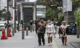 REPUBLIKA.CO.ID, JAKARTA -- Warga berjalan di trotoar di Sudirman, Jakarta, Kamis (22/2/2024). Hari tanpa bayangan atau kulminasi utama akan terjadi dua kali dalam setahun 2024, yang disebabkan posisi Indonesia berada di sekitar ekuator.