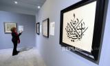 Pengunjung menghadiri pameran karya kaligrafi Arab koleksi Yayasan Turki Albayrak di Macam-Tunis di Tunis, Tunisia, Kamis (22/2/2024). (FOTO : EPA)