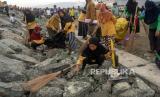 REPUBLIKA.CO.ID, PALU. -- Warga memungut sampah yang terselip di antara bebatuan pada aksi massal pungut sampah plastik di Pantai Talise, Palu, Sulawesi Tengah, Jumat (23/2/2024).