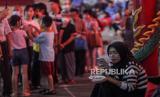 REPUBLIKA.CO.ID, JAKARTA. -- Warga keturunan Tionghoa mengantre untuk mengambil makanan saat perayaan cap go meh di Vihara Amurva Bhumi, Karet Semanggi, Setiabudi, Jakarta Selatan, Jumat (23/2).
