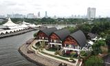 Foto udara tiga unit resor cluster premium Paus Cottage di Putri Duyung Ancol, Jakarta Utara, Jumat (23/2/2024). PT Pembangunan Jaya Ancol Tbk meresmikan 3 unit Paus Cottage dari total 130 cluster di Putri Duyung bagi pengunjung yang ingin merasakan pengalaman menginap eksklusif di resor yang memiliki pemandangan laut Jakarta. (FOTO : Republika/Edwin Dwi Putranto)