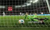 Kiper Mainz Robin Zentner tergeletak di tanah setelah kebobolan 2-1 pada pertandingan sepak bola Bundesliga Jerman antara Bayer Leverkusen dan FSV Mainz 05 di Leverkusen, Jerman, Sabtu (24/2/2024) dini hari WIB (FOTO : EPA)