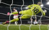 Penjaga gawang Newcastle United Loris Karius gagal menjangkau bola saat melawan Arsenal pada pertandingan sepak bola Liga Premier Inggris di stadion Emirates, London, Sabtu (2/2/2024).The Gunners menang besar 4-1 atas Newcastle United. Gol Arsenal dicetak Sven Botman yang melakukan gol bunuh diri di menit ke-18, Kai Havertz menit ke-24, Bukayo Saka menit ke-65, dan Jakub Kiwior menit ke-69. Satu gol The Magpies dicetak Joe Willock di menit ke-84. (FOTO : AP Photo/Alastair Grant)