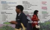 Pengunjung melintas di depan bannner program studi salah satu stan universitas pada Indonesia International Education and Training Expo (IIETE) 2024 di Jakarta Convention Center, Jakarta, Ahad (25/2/2024). Pameran pendidikan tinggi yang diikuti lebih dari 200 universitas, institut, dan lembaga pendidikan dari dalam dan luar negeri itu bertujuan agar calon mahasiswa memperoleh gambaran kampus dan program studi yang sesuai dengan minat dan bakat mereka juga memperoleh informasi tentang beasiswa pendidikan. (FOTO : ANTARA FOTO/Indrianto Eko Suwarso)