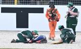 British rider Jonathan Rea of Pata Prometeon Yamaha is assisted by medical staff after crashing during WorldSBK Race Two of the Superbike World Championship on Phillip Island, Victoria, Australia, 25 February 2024. (FOTO : EPA-EFE/JOEL CARRETT)