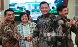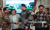 REPUBLIKA.CO.ID, JAKARTA. -- Menteri ATR/Kepala BPN Agus Harimurti Yudhoyono (kedua kanan) berjabat tangan dengan Kepala Staf Kepresidenan Moeldoko (kiri) disaksikan Menteri LHK Siti Nurbaya (kedua kiri) dan Menkopolhukam Hadi Tjahjanto jelang Sidang Kabinet Paripurna di Istana Negara, Jakarta, Senin (26/2/2024).