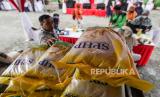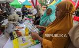 Warga memilih bahan kebutuhan pokok saat bazar pasar murah di Kantor Kecamatan Pancoran, Jakarta, Senin (26/2/2024). Bazar pasar murah yang menjual kebutuhan pokok seperti beras SPHP Rp 53.000, beras permium Rp 69.500, tepung terigu Rp 12.000 dan minyak goreng kita Rp 17.000 itu untuk membantu masyarakat mendapatkan barang kebutuhan pokok dengan harga terjangkau terutama beras yang mengalami kenaikan harga. (FOTO : Republika/Putra M. Akbar)