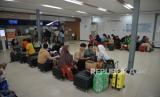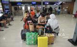 Penumpang menunggu keberangkatan kereta api jarak jauh di Stasiun Pasar Senen, Jakarta, Senin (26/2/2024). PT Kereta Api Indonesia (KAI) sudah mulai menjual tiket kereta api periode Angkutan Lebaran 2024. Hingga Senin (26/2/2024), tiket yang terjual tercatat 446.135 tiket atau 34 persen dari total tiket yang disediakan sebanyak 1.332.626 tiket. Penjualan tiket ini akan terus meningkat karena penjualan masih berlangsung. (FOTO : Republika/Prayogi)