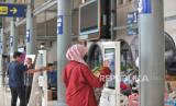 Calon penumpang mencetak tiket kereta api jarak jauh di Stasiun Pasar Senen, Jakarta, Senin (26/2/2024). PT Kereta Api Indonesia (KAI) sudah mulai menjual tiket kereta api periode Angkutan Lebaran 2024. Hingga Senin (26/2/2024), tiket yang terjual tercatat 446.135 tiket atau 34 persen dari total tiket yang disediakan sebanyak 1.332.626 tiket. Penjualan tiket ini akan terus meningkat karena penjualan masih berlangsung. (FOTO : Republika/Prayogi)