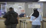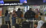 Calon penumpang melakukan pembatalan tiket kereta api jarak jauh di Stasiun Pasar Senen, Jakarta, Senin (26/2/2024). PT Kereta Api Indonesia (KAI) sudah mulai menjual tiket kereta api periode Angkutan Lebaran 2024. Hingga Senin (26/2/2024), tiket yang terjual tercatat 446.135 tiket atau 34 persen dari total tiket yang disediakan sebanyak 1.332.626 tiket. Penjualan tiket ini akan terus meningkat karena penjualan masih berlangsung. (FOTO : Republika/Prayogi)