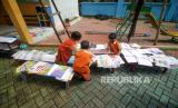 REPUBLIKA.CO.ID, SIDOARJO. -- Siswa menjemur buku yang basah akibat kehujanan di sekolah kawasan Sumput, Sidoarjo, Jawa Timur, Selasa (27/2/2024).