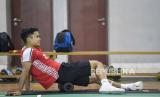 Pebulu tangkis tunggal putra Indonesia Anthony Sinisuka Ginting melakukan pemanasan saat mengikuti Pemusatan Latihan Nasional (Pelatnas) Bulu tangkis di PBSI Cipayung, Jakarta, Selasa (27/2/2024). PBSI menyiapkan pebulu tangkis Indonesia untuk menghadapi dua turnamen terdekat, yakni French Open dan All England Open 2024 pada Maret 2024. (FOTO : ANTARA FOTO/M Risyal Hidayat)