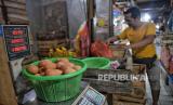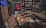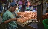REPUBLIKA.CO.ID, JAKARTA -- Pedagang menimbang telur ayam di Pasar PSPT, Jakarta, Selasa (27/2/2024). Harga telur melambung tinggi pada dua pekan menjelang Ramadan.