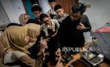 REPUBLIKA.CO.ID, JAKARTA -- Pemateri penyandang tunawicara menggunakan bahasa isyarat memberikan pelatihan barista kepada penyandang tunarungu dan tunawicara di Sunyi Akademi, Jakarta, Selasa (27/2/2024).