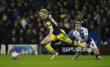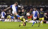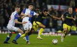Sammie Szmodics dari Blackburn (kiri) mencetak gol pembuka timnya selama pertandingan sepak bola putaran kelima Piala FA Inggris antara Blackburn Rovers dan Newcastle, di stadion Ewood Park, di Blackburn, Rabu (28/2/2024) dini hari WIB. (FOTO : AP)
