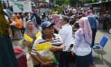 Antrean warga saat Operasi Pasar Beras Medium di Kecamatan Cibeunying Kidul, Kota Bandung, Jawa Barat, Rabu (28/2/2024). Beras mediumSPHP Bulog yang dijual di kegiatan tersebut Rp 10.600 per kilogram (kg) atau Rp 53.000 per pak (5 kg). Antusias warga yang begitu besar, operasi pasar pun berlangsung cukup singkat. Operasi Pasar Beras Mediun di Kota Bandung dilaksanakan di seluruh kecamatan secara bergiliran, hingga 1 Maret 2024. (FOTO : Edi Yusuf/Republika)