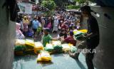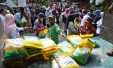 Antrean warga saat Operasi Pasar Beras Medium di Kecamatan Cibeunying Kidul, Kota Bandung, Jawa Barat, Rabu (28/2/2024). Beras medium SPHP Bulog yang dijual di kegiatan tersebut Rp 10.600 per kilogram (kg) atau Rp 53.000 per pak (5 kg). Antusias warga yang begitu besar, operasi pasar pun berlangsung cukup singkat. Operasi Pasar Beras Mediun di Kota Bandung dilaksanakan di seluruh kecamatan secara bergiliran, hingga 1 Maret 2024. (FOTO : Edi Yusuf/Republika)