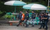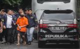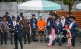 Tersangka kasus pembunuhan Yudha Arfandi digiring oleh polisi saat rekonstruksi pembunuhan di Taman Air Tirtamas Pondok Kelapa, Jakarta Timur, Rabu (28/2/2024). Ditreskrimum Polda Metro Jaya melaksanakan rekonstruksi kasus pembunuhan putra artis Tamara Tyasmara, Raden Andante Khalif Pramudityo alias Dante dengan memperagakan 49 adegan di kolam renang sedalam 1,5 meter. (FOTO : Republika/Putra M. Akbar)
