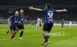 Matteo Darmian dari Inter Milan (kanan) melakukan selebrasi usai mencetak gol ke gawang Atalanta pada pertandingan sepak bola Serie A antara Inter Milan dan Atalanta di Stadion San Siro, di Milan, Italia, Kamis (29/2/2024) dini hari WIB.  (FOTO : AP)