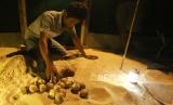 REPUBLIKA.CO.ID, ACEH BESAR. -- Aktivis lingkungan Lembaga Ekowisata Pulo Aceh (LEPA) memperlihatkan telur penyu blimbing (Dermochelys coriacea) yang diselamatkan dari pemburu sebelum proses pengeraman di pesisir pantai Pulo Aceh, Aceh Besar, Aceh, Ahad (3/3/2024).