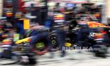 Pembalap Red Bull Racing Sergio Perez dari Meksiko saat pit stop di Grand Prix Formula Satu Bahrain, di Sirkuit Internasional Bahrain di Sakhir, Bahrain, Sabtu (2/3/2024). (FOTO : EPA POOL)