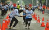 Peserta mengikuti gelaran BTN Run yang digelar dalam rangka peringatan HUT ke-74 Bank BTN di Stadion Indonesia Arena, Kawasan GBK, Senayan, Jakarta, Ahad (3/3/2024). (FOTO : Republika/Thoudy Badai)