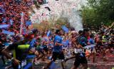 Peserta mengikuti gelaran BTN Run yang digelar dalam rangka peringatan HUT ke-74 Bank BTN di Stadion Indonesia Arena, Kawasan GBK, Senayan, Jakarta, Ahad (3/3/2024). Dalam gelaran tersebut, PT Bank Tabungan Negara (Persero) Tbk meluncurkan logo baru sejalan dengan perayaan Hari Ulang Tahun (HUT) BTN ke-74. Acara ini juga dimeriahkan dengan berbagai acara seperti BTN Jakarta Run, konser musik hingga acara lainnya. (FOTO : Republika/Thoudy Badai)