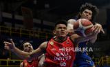 Pebasket Satria Muda Pertamina Mychael Gerome Henry berduel dengan pebasket Bali United Basketball Rico Aditya Putra dalam pertandingan Indonesia Basketball League (IBL) 2024 di GOR Pertamina Arena Simprug, Jakarta, Ahad (3/3/2024). Pada pertandingan tersebut Satria Muda Pertamina berhasil mengalahkan Bali United Basketball dengan skor akhir 101-88. (FOTO : Republika/Thoudy Badai)