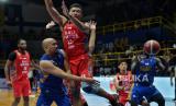 Pebasket Satria Muda Pertamina berusaha melewati hadangan pebasket Bali United Basketball dalam pertandingan Indonesia Basketball League (IBL) 2024 di GOR Pertamina Arena Simprug, Jakarta, Ahad (3/3/2024). Pada pertandingan tersebut Satria Muda Pertamina berhasil mengalahkan Bali United Basketball dengan skor akhir 101-88. (FOTO : Republika/Thoudy Badai)