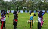 REPUBLIKA.CO.ID, BANYUWANGI. -- Peserta membidik sasaran pada lomba panahan di Balak, Banyuwangi, Jawa Timur, Ahad (3/3/2024).