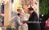 Try Sutrisno menghadiri resepsi pernikahan anak Menteri Pertanian Andi Amran Sulaiman yaitu Andi Amar Maruf Sulaiman dan mempelai wanita Ihsani Nurul Izzah di Birawa Assembly Hall Hotel Bidakara Jakarta, Ahad (3/3/2024). Hadir di antara undangan Presiden Joko Widodo beserta ibu Iriana dan Wakil Presiden RI KH. Maruf Amin beserta Ibu Wury dan para pejabat elit lainya. (FOTO : Dok Republika)