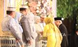 Dalam kesempatan ini, Presiden Jokowi nampak memberikan restu serta selamat pada kedua mempelai. Sementara pejabat lainnya di barisan depan turut menyaksikan resepsi Andi Amar dan Ihsani.