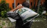 Warga membawa beras yang dibeli saat penyelenggaraan program Bulog Siaga di Jalan Jambu, Mulyaharja, Kota Bogor, Jawa Barat, Senin (4/3/2024). Pemerintah terus mengupayakan membantu masyarakat mendapatkan barang kebutuhan pokok terutama beras yang mengalami kenaikan harga melalui program Bulog Siaga dan penyaluran Bantuan Sosial Cadangan Beras Pemerintah (Bansos CBP) untuk memenuhi kebutuhan pangan rumah tangga masyarakat. Bulog Siaga menyediakan kebutuhan pokok berupa beras SPHP dua ton, beras premium 500 kilogram, gula pasir 100 kilogram, minyak goreng 120 liter dan tepung beras 24 kilogram yang dijual untuk masyarakat dengan harga yang lebih murah di pasaran. Sedangkan, Bansos CBP berupa beras yang dibagikan secara gratis diperuntukan bagi masyarakat di 12 RW Kelurahan Mulyaharja yang membutuhkan. (FOTO : Republika/Putra M. Akbar)