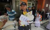 REPUBLIKA.CO.ID, BOGOR -- Warga membawa beras yang dibeli saat penyelenggaraan program Bulog Siaga di Jalan Jambu, Mulyaharja, Kota Bogor, Jawa Barat, Senin (4/3/2024).