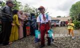 Seorang anak membawa beras yang dibeli saat penyelenggaraan program Bulog Siaga di Jalan Jambu, Mulyaharja, Kota Bogor, Jawa Barat, Senin (4/3/2024). Pemerintah terus mengupayakan membantu masyarakat mendapatkan barang kebutuhan pokok terutama beras yang mengalami kenaikan harga melalui program Bulog Siaga dan penyaluran Bantuan Sosial Cadangan Beras Pemerintah (Bansos CBP) untuk memenuhi kebutuhan pangan rumah tangga masyarakat. Bulog Siaga menyediakan kebutuhan pokok berupa beras SPHP dua ton, beras premium 500 kilogram, gula pasir 100 kilogram, minyak goreng 120 liter dan tepung beras 24 kilogram yang dijual untuk masyarakat dengan harga yang lebih murah di pasaran. Sedangkan, Bansos CBP berupa beras yang dibagikan secara gratis diperuntukan bagi masyarakat di 12 RW Kelurahan Mulyaharja yang membutuhkan. (FOTO : Republika/Putra M. Akbar)