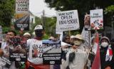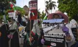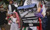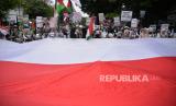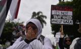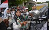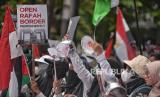 REPUBLIKA.CO.ID, JAKARTA -- Sejumlah massa melakukan aksi solidaritas untuk Palestina di depan Kedubes Mesir, Jakarta, Senin (4/3/2024). Dalam aksi tersebut mereka mendesak Mesir untuk mencegah bencana kelaparan di Gaza akibat genosida Israel yaitu dengan membuka pintu perbatasan Rafah.