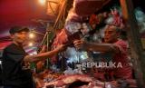 Pedagang daging sapi melayani pembeli di pasar tradisional Pasar Minggu, Jakarta Selatan, Senin (4/3/2024). Sepekan menjelang bulan suci Ramadhan 1445 Hijriah, sejumlah harga pangan pokok mulai merangkak naik di Pasar Minggu. Untuk harga daging ayam mengalami kenaikan Rp2.000 sampai Rp3.000 dari harga Rp32.000 per ekor, kini seharga Rp35.000 per ekor, harga telur sebelumnya Rp27.000 menjadi Rp30.000 sementara untuk harga daging sapi mengalami kenaikan sebesar Rp10.000 dari Rp125.000 per kilogram kini mencapai Rp135.000 per kilogram. kenaikan tersebut dikeluhkan sejumlah pedagang, pasalnya, daya beli masyarakat mengalami penurunan imbas dari melonjaknya sejumlah harga pangan pokok lainnya. (FOTO : Republika/Thoudy Badai)