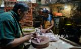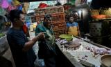 Pedagang daging ayam melayani pembeli di pasar tradisional Pasar Minggu, Jakarta Selatan, Senin (4/3/2024). Sepekan menjelang bulan suci Ramadhan 1445 Hijriah, sejumlah harga pangan pokok mulai merangkak naik di Pasar Minggu. Untuk harga daging ayam mengalami kenaikan Rp2.000 sampai Rp3.000 dari harga Rp32.000 per ekor, kini seharga Rp35.000 per ekor, harga telur sebelumnya Rp27.000 menjadi Rp30.000 sementara untuk harga daging sapi mengalami kenaikan sebesar Rp10.000 dari Rp125.000 per kilogram kini mencapai Rp135.000 per kilogram. kenaikan tersebut dikeluhkan sejumlah pedagang, pasalnya, daya beli masyarakat mengalami penurunan imbas dari melonjaknya sejumlah harga pangan pokok lainnya. (FOTO : Republika/Thoudy Badai)