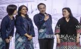 Executive Vice President Global Lubricants Shell Jason Wong (kedua kanan) berbincang dengan Direktur Industri Kimia Hilir dan Farmasi Kementerian Perindustrian Emmy Suryandari (kanan), Vice President Lubricants Asia Pacific Shell Mansi Tripathy (kedua kiri), dan GM Lubricants Supply Chain Asia Pacific Shell EE Poh Ling (kiri) dalam acara peletakan batu pertama kontruksi pembangunan pabrik manufaktur gemuk (grease) Shell Indonesia, di Jakarta, Senin (4/3/2024). Shell Indonesia mengumumkan pembangunan pabrik manufaktur gemuk pertamanya untuk melengkapi pabrik pelumas (LOBP) Shell di Marunda, Bekasi, Jawa Barat, dengan kapasitas produksi hingga 12 juta liter gemuk per tahun. (FOTO : ANTARA FOTO/Aprillio Akbar)