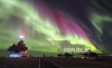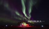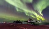 REPUBLIKA.CO.ID -- Foto yang disediakan oleh Kementerian Pertahanan Inggris memperlihatkan dek parkir di penerbangan kapal induk HMS Prince of Wales milik Royal Navy, di bawah cahaya utara (Aurora Borealis) dekat pantai Norwegia, Senin (4/3/2024).