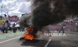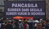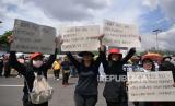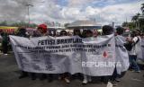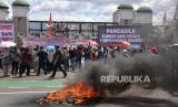 Sejumlah massa dari berbagai elemen masyarakat melakukan aksi di depan kompleks parlemen, Senayan, Jakarta, Selasa (5/3/2024). Dalam aksinya mereka mendukung DPR menggulirkan hak angket untuk mengusut tuntas dugaan kecurangan Pemilu 2024. (FOTO : Republika/Prayogi)