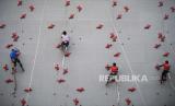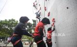 REPUBLIKA.CO.ID,  BEKASI. --  Sejumlah atlet panjat tebing nomor speed Indonesia memacu kecepatannya saat berlatih dalam Pemusatan Latihan Nasional (Pelatnas) di kawasan Harapan Indah, Kota Bekasi, Jawa Barat, Selasa (5/3/2024). Federasi Pengurus Panjat Tebing Indonesia (FPTI) menyiapkan atletnya untuk mengikuti kejuaraan dunia yakni IFSC World Cup seri Wujiang, China pada 12 April dan IFSC World Cup seri Salt Lake, Amerika Serikat pada 3 Mei.