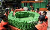 Menurut petugas UPS Badan Air sebanyak 1.000 botol plastik dimanfaatkan untuk pembuatan perahu selama dua minggu yang bisa membawa enam orang saat melakukan pembersihan sampah di aliran Kanal Banjir Timur.