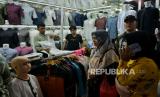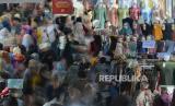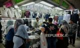 Suasana Pasar Tanah Abang, Jakarta, Rabu (6/3/2024). Menjelang bulan suci Ramadhan 1445 Hijriah, pedagang busana muslim dan muslimah di Pasar Tanah Abang mengalami kenaikan omset hingga 50 persen. Para pengunjung mulai berburu busana muslim seperti gamis, baju koko, kopiah, sarung dan sejadah untuk menyambut bulan Ramdhan. (FOTO : Republika/Thoudy Badai)