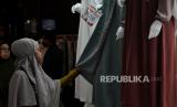 Pembeli nengamati busana muslimah di Pasar Tanah Abang, Jakarta, Rabu (6/3/2024). Menjelang bulan suci Ramadhan 1445 Hijriah, pedagang busana muslim dan muslimah di Pasar Tanah Abang mengalami kenaikan omset hingga 50 persen. Para pengunjung mulai berburu busana muslim seperti gamis, baju koko, kopiah, sarung dan sejadah untuk menyambut bulan Ramdhan. (FOTO : Republika/Thoudy Badai)