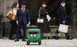 REPUBLIKA.CO.ID, TOKYO. -- Robot pengantar makanan Uber Eats saat berikan layanan pengantaran di sebuah lingkungan di Tokyo, Jepang, Rabu (6/4/2024).