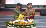 Panglima Kostrad (Pangkostrad) Letnan Jenderal TNI Muhammad Saleh Mustafa menyerahkan tumpeng kepada Jenderal TNI (Purn.) Wiranto saat syukuran peringatan HUT Ke-63 Kostrad tahun 2024, bertempat di  Beach City Internasional Stadium Ancol. Jakarta Utara. Rabu (6/3/2024). Hadir dalam acara HUT Kostrad Panglima TNI Jenderal TNI Agus Subiyanto, Kapolri Jenderal Polisi Drs. Listyo Sigit Prabowo, M.Si., KASAD Jenderal TNI Maruli Simanjuntak, M.Sc dan dan Jenderal TNI (Purn.) Wiranto. (FOTO : Dok Republika)